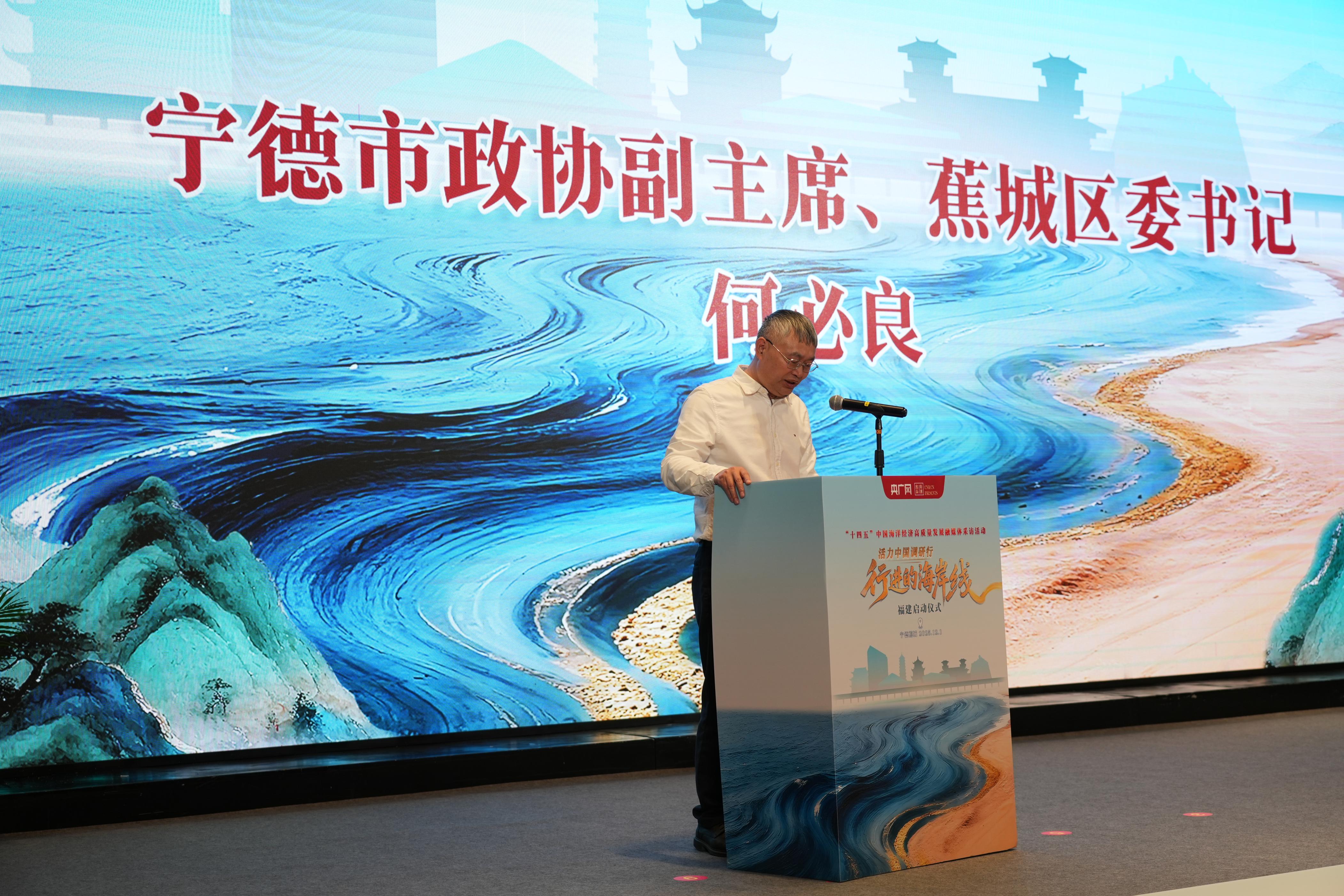 何必良代表蕉城区委、区政府致辞。他表示,蕉城拥有得天独厚的海洋资源禀赋。蜿蜒曲折的海岸线勾勒出壮美的山海画卷,海上天湖三都澳、百里画廊霍童溪享誉四方,锂电新能源、新能源汽车、铜材料三大世界级产业地标巍峨耸立,“中国大黄鱼之乡”“中国茶业百强县”等金字招牌闪闪发光。“借此机会,热忱邀请大家常来‘好山好水好风光、有诗有景有远方’的大美蕉城走一走、看一看,感受蕉城的人文魅力、领略蕉城的山海美景、品味蕉城的特色美食。”何必良说。