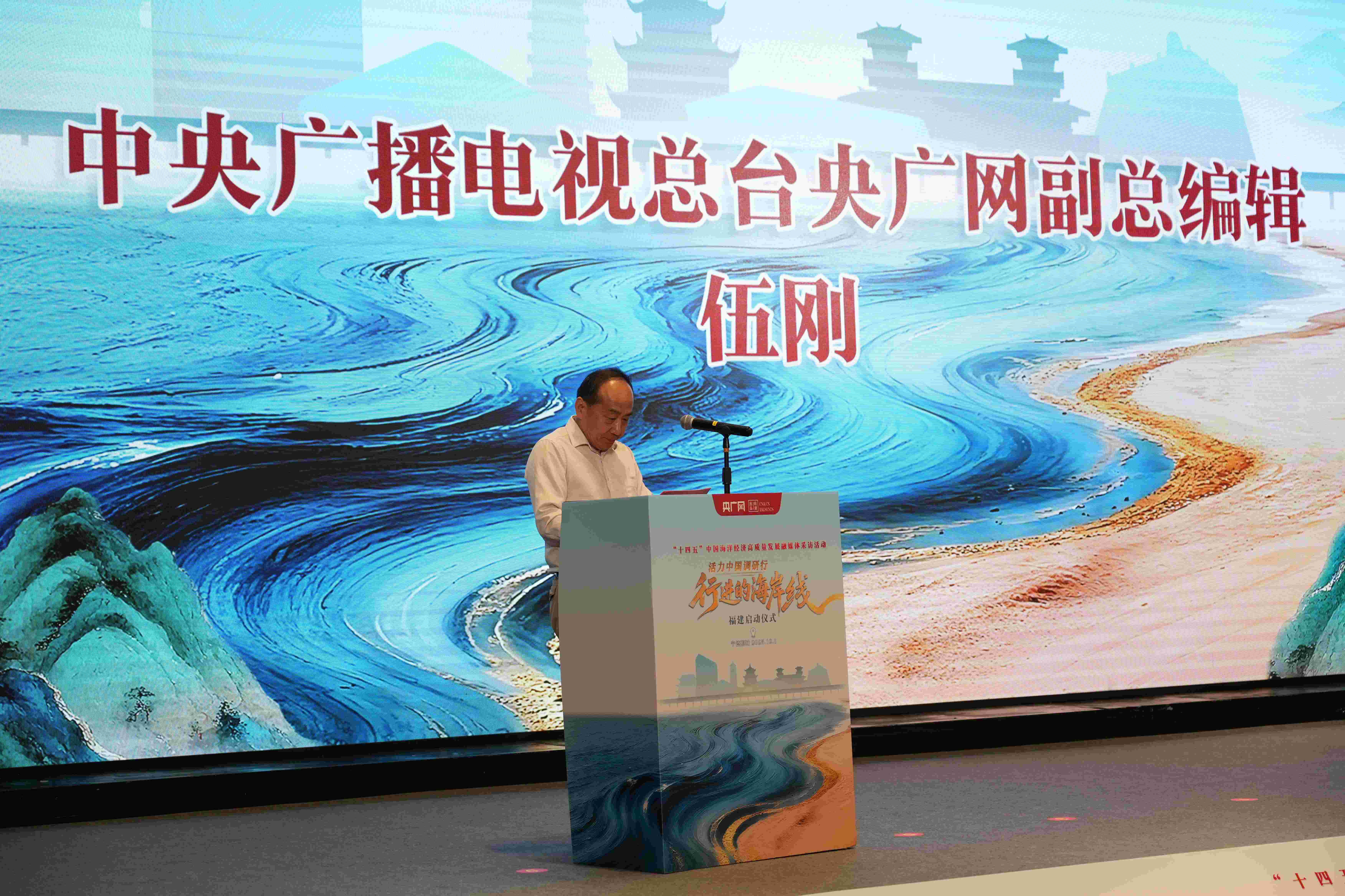 伍刚在致辞中表示,此次“行进的海岸线”大型融媒体采访活动,是央广网2025年的重点策划之一,也是落实中宣部“活力中国调研行”的重要举措。在“海洋强国”战略的指引下,央广网沿海15个地方频道的骨干记者沿着中国海岸线,采用行进式、体验式、观察式报道,讲述海洋经济高质量发展的中国故事。目前已推出了一批海洋经济高质量发展的鲜活报道,产生了热烈的社会反响。“福建海岸线居全国第二,拥有丰富的海洋资源。此次选择在福建蕉城启动,既是对蕉城以及宁德奋力推动海洋经济高质量发展成绩的集中展现,也是央广网履行媒体职责,通过央媒矩阵力量,向全国传递‘海上福建’向海图强实践的重要举措。”伍刚表示。