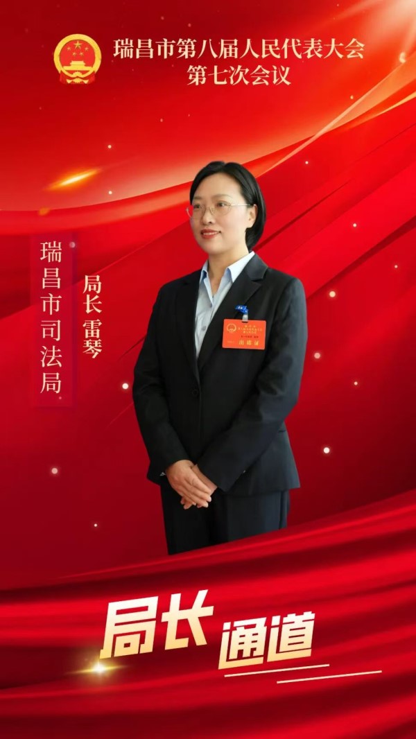 瑞昌市司法局局长、总支副主委雷琴在瑞昌市第八届人大第七次会议“局长通道”上回答记者提问。(农工党瑞昌总支 蔡秋明)