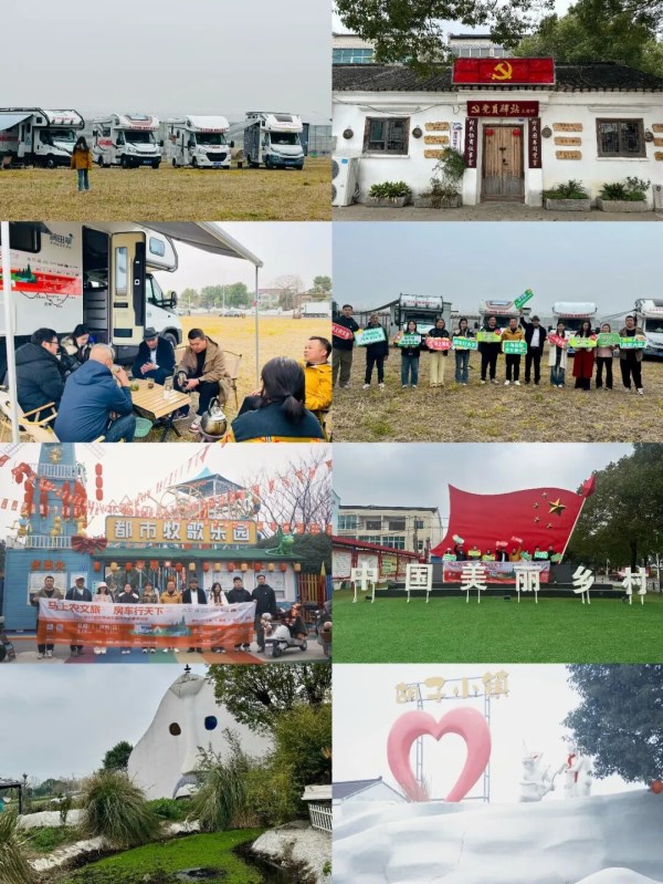 3月15日 - 17日,告别上海,车队穿越江苏、安徽两省。在无锡胡子小镇感受艺术氛围与田园野趣;走进南京中琅房车工厂与技术团队深度交流;夜宿合肥罍街徽派街区,车友们自己动手做饭;在金寨烈士纪念馆缅怀先烈,让旅程更具精神厚度。