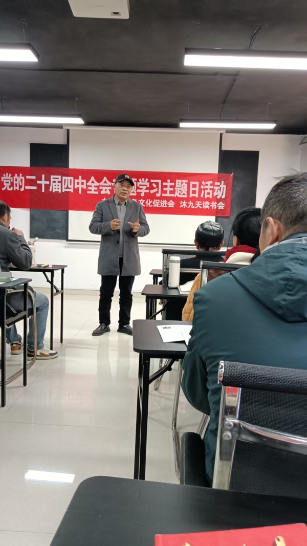 11月21日上午,九江火车站慧远茶社内书香氤氲、热议阵阵,九江市红色文化促进会与沐九天读书会共同举办党的二十届四中全会精神专题学习活动,20余名红色文化爱好者、读书会成员齐聚一堂,在深学细悟中凝聚思想共识,在交流分享中激发奋进力量。