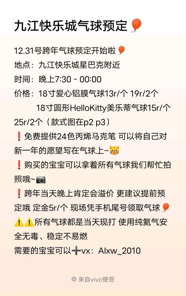 这场销售并非临时起意。早在去年暑假,詹鑫文就在李公堤凭借宠物气球积累了人生第一笔创业经验,从选品、定价到顾客沟通,每一个环节都让她摸清了小生意的门道。跨年夜前夕,她敏锐嗅到节日经济商机,结合联盛快乐城跨年晚会、万人倒计时的热闹氛围,敲定售卖氦气球的计划。为避开现场几十伙同行的激烈竞争,这个心思活络的姑娘提前在抖音做足功课:发布精心剪辑的气球实拍视频,标注"跨年专属款""提前预订享优惠",还贴心提供愿望书写、拍照打卡等附加服务,早早锁定一批订单。"跨年夜现场肯定溢价还缺货,提前预售既能保证销量,也能让顾客省心",詹鑫文的预判精准击中消费者需求。