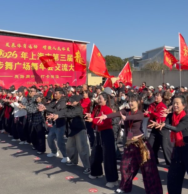 动感节拍唤醒冬日活力,灵动舞步点亮城市温情。2026年1月11日,由上海市广场健身舞运动协会主办的2026曳步舞广场舞年会交流大会在青浦区徐泾镇隆重启幕。来自上海各区县的800余名曳步舞、广场舞爱好者组成70支精锐队伍齐聚一堂,以舞会友、切磋技艺,共同呈现了一场兼具观赏性与感染力的全民健身文化盛宴。