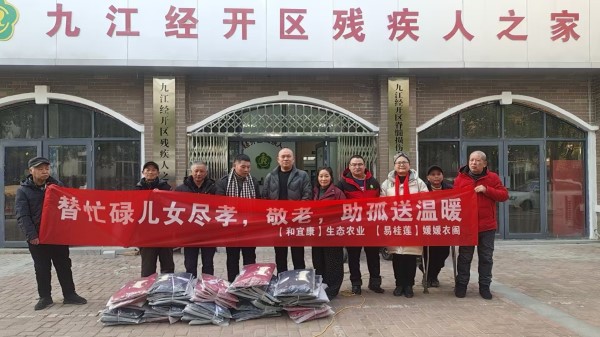 1月24日下午,九江经开区残疾人之家内暖意融融,一场主题为“替忙碌儿女敬老助孤送温暖”的公益活动在此温情上演。媛媛衣阁负责人易桂莲与【和宜康】生态农业!弟弟刘敏携手,为这里的特殊群体送上50件价值逾万元的高档棉外套,用实际行动传递感恩之心与社会温情。
