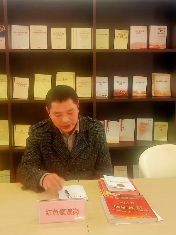 最后,也是我最想强调的,为红色江山不变色而读书,以书铸魂、践行初心。作为九江市红色文化促进会会长兼党总支书记,作为一名退役军人、公益人,我始终坚信,读书不仅为个人成长,更为传承信仰、坚守初心、爱党爱国爱人民。我们读红色经典、学革命历史、悟党的理论,是为了铭记峥嵘岁月、传承红色基因,让红色江山代代不变色;读道德修养、公益践行的书籍,是为了守住善心、涵养正气,把读书所得转化为敬老助孤、帮扶他人的实际行动;读家国情怀、民族精神的著作,是为了厚植爱国底色,把个人成长融入时代发展,践行一名共产党员、一名公益人的使命担当。